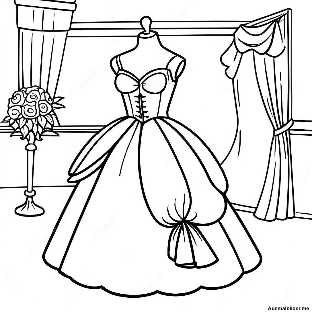 Druckbare PDF von Anmutiges Vintage-Ballkleid Ausmalbild herunterladen