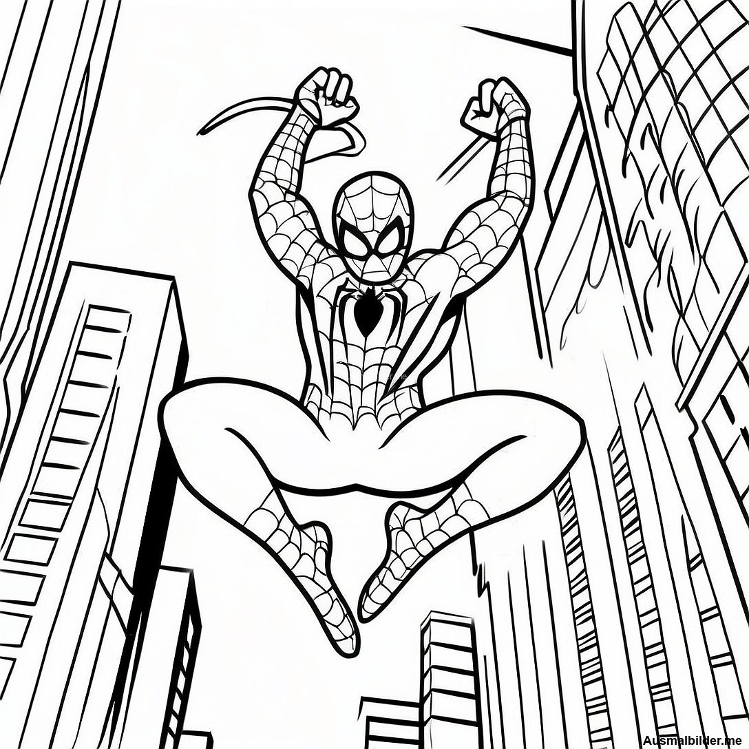 Druckbare PDF von Ausmalbild Spider Man Schwingt Durch Die Stadt herunterladen