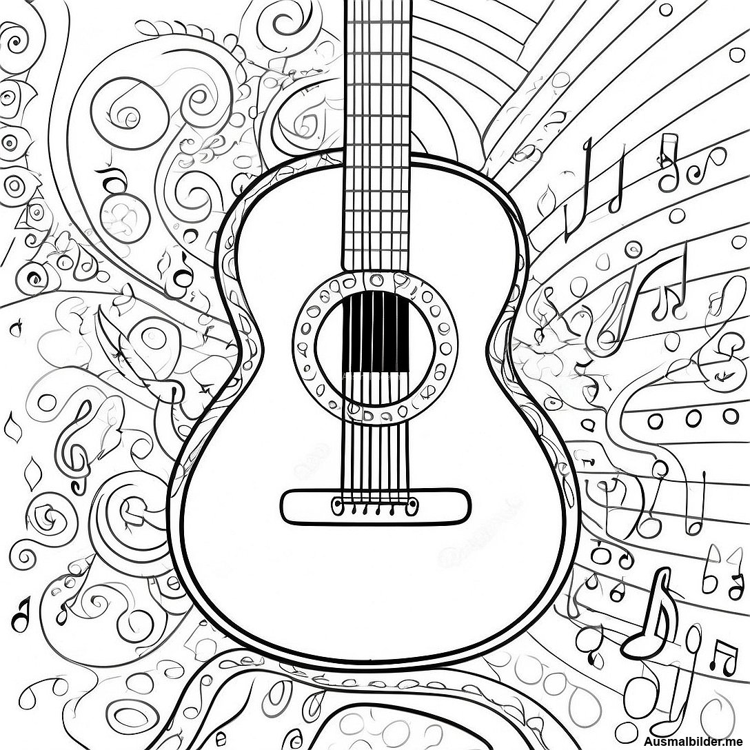 Bunte Gitarre Mit Noten Ausmalbild
