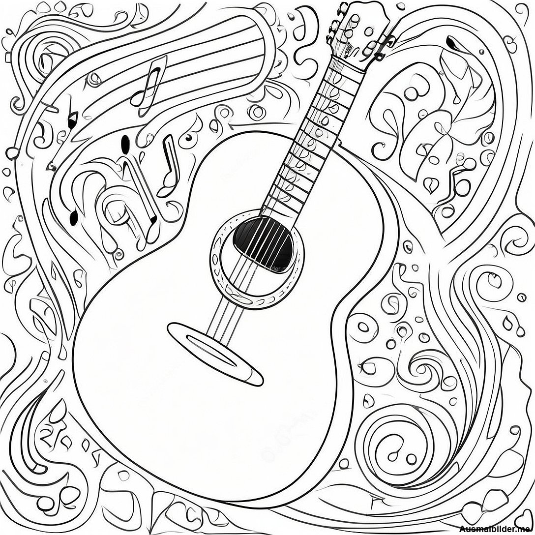 Bunte Gitarre Mit Noten Ausmalbild 74986 18184