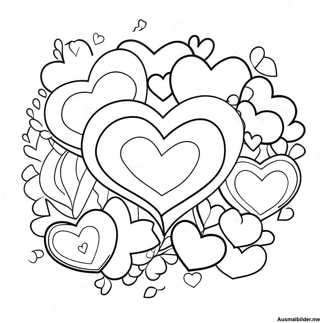 Druckbare PDF von Bunte Liebesherzen Ausmalbild herunterladen