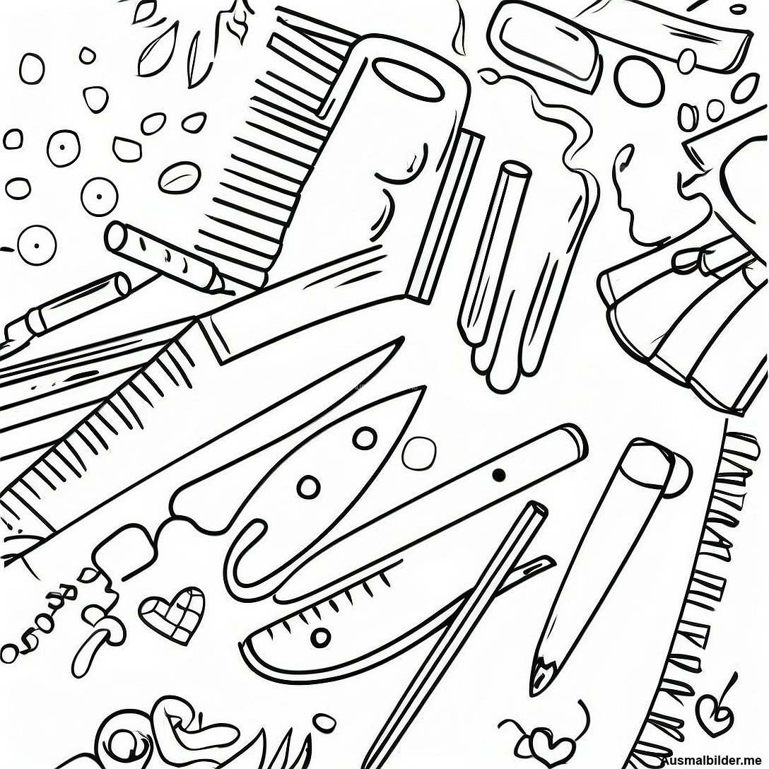 Druckbare PDF von Bunte Schulmaterialien Ausmalbild herunterladen