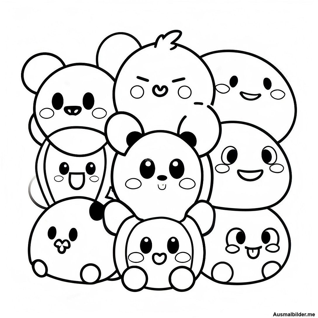 Druckbare PDF von Bunter Tsum Tsum Stapel Ausmalbild herunterladen