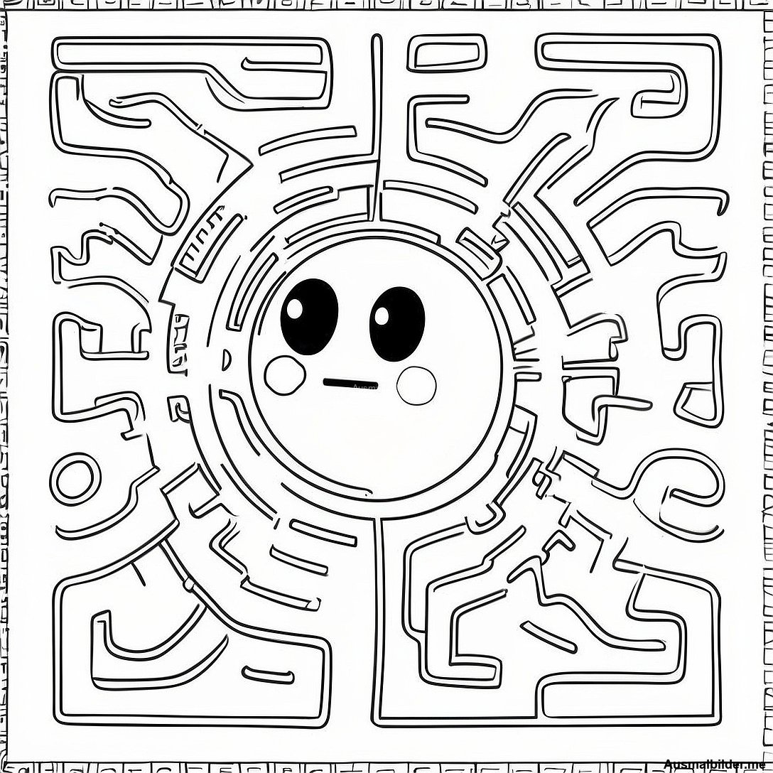 Druckbare PDF von Buntes Pac Man Labyrinth Ausmalbild herunterladen