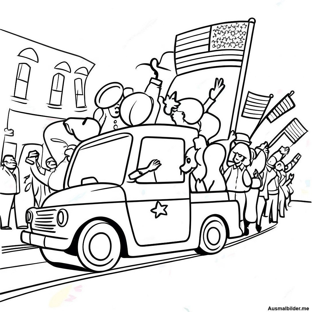 Druckbare PDF von Buntes Wahltag Parade Ausmalbild herunterladen