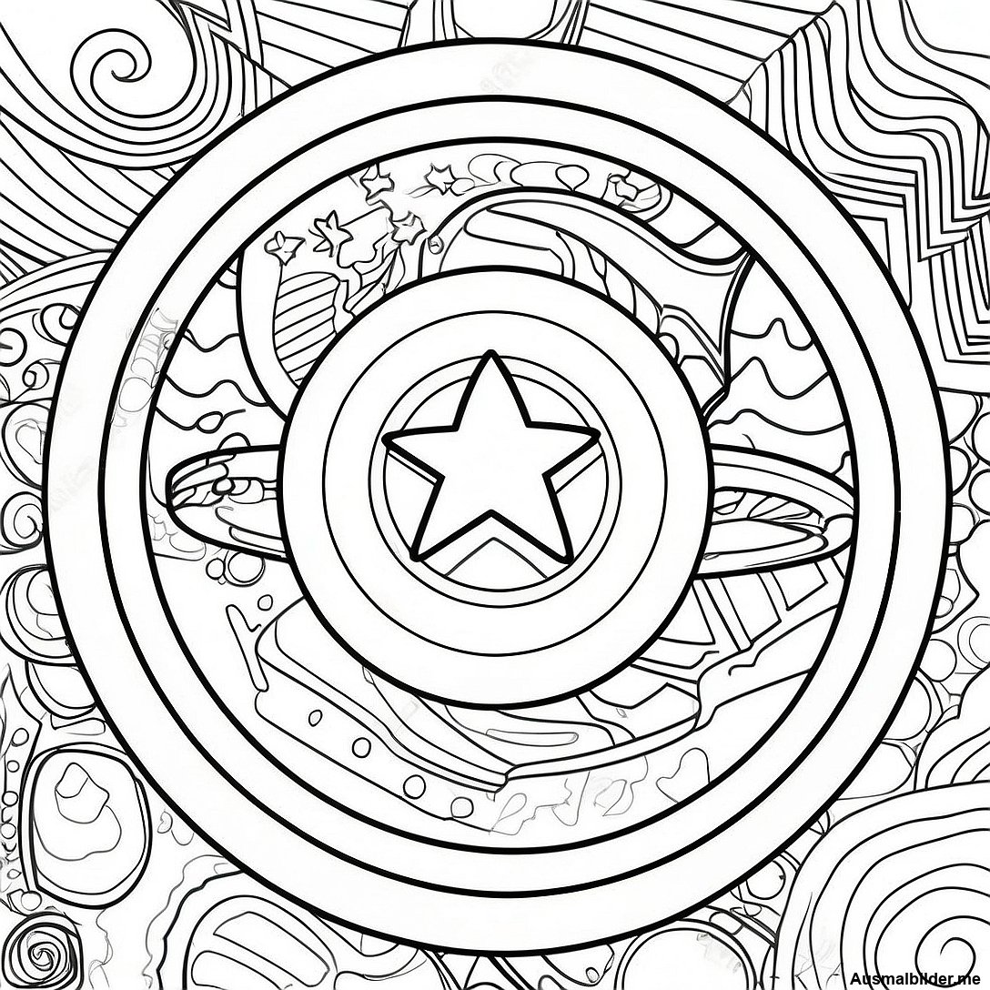 Druckbare PDF von Captain America Schild Ausmalbild herunterladen