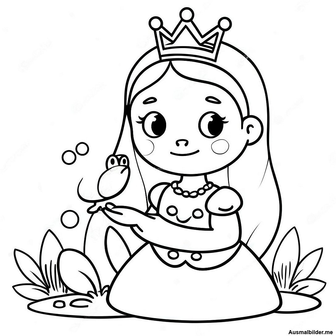 Charmante Prinzessin Mit Einem Frosch Ausmalbild