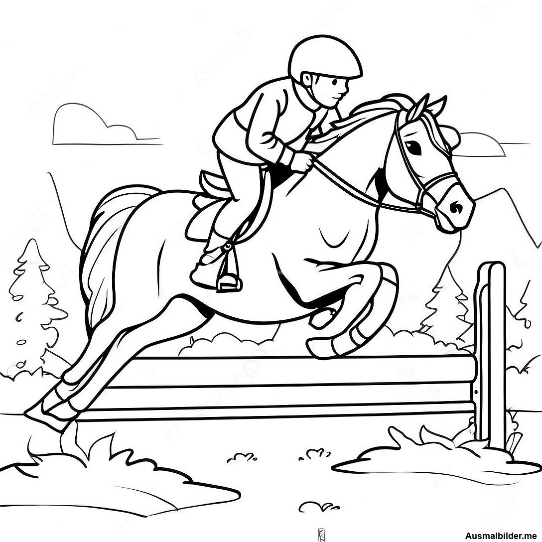 Druckbare PDF von Cross Country Springendes Pferd Ausmalbild herunterladen