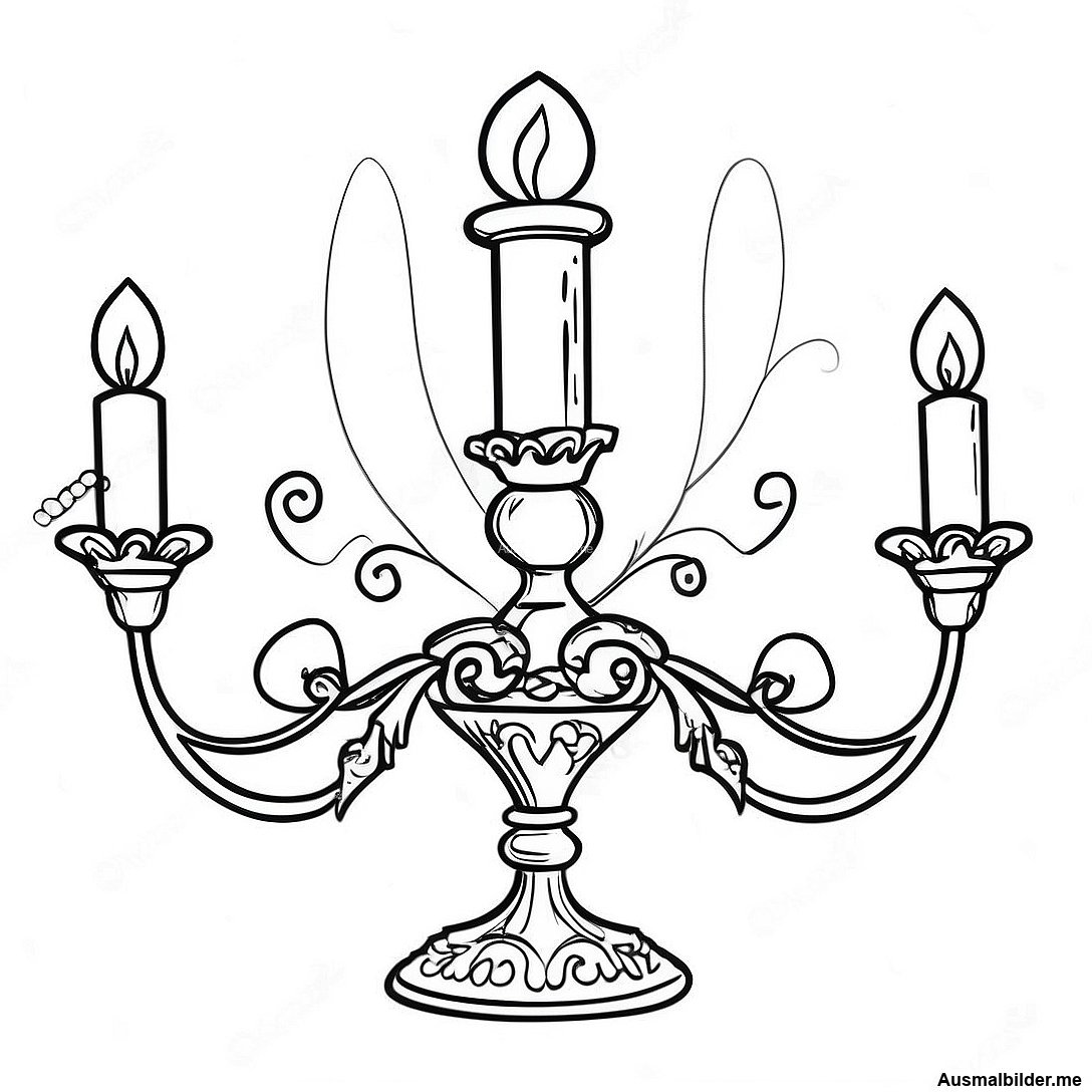 Druckbare PDF von Delightful Lumière Der Kerzenständer Ausmalbild herunterladen
