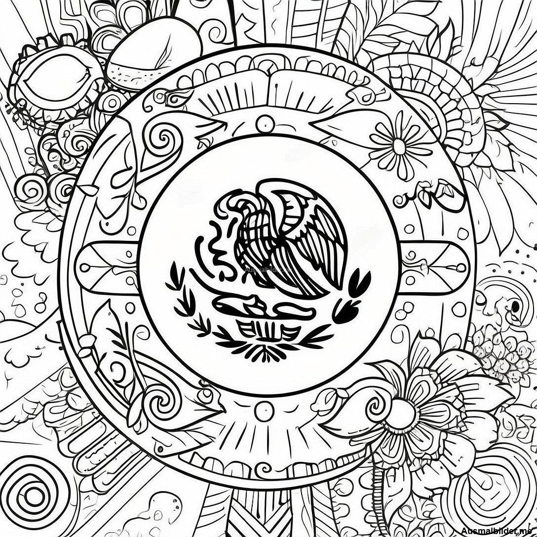 Detaillierte Mexikanische Flagge Ausmalbild