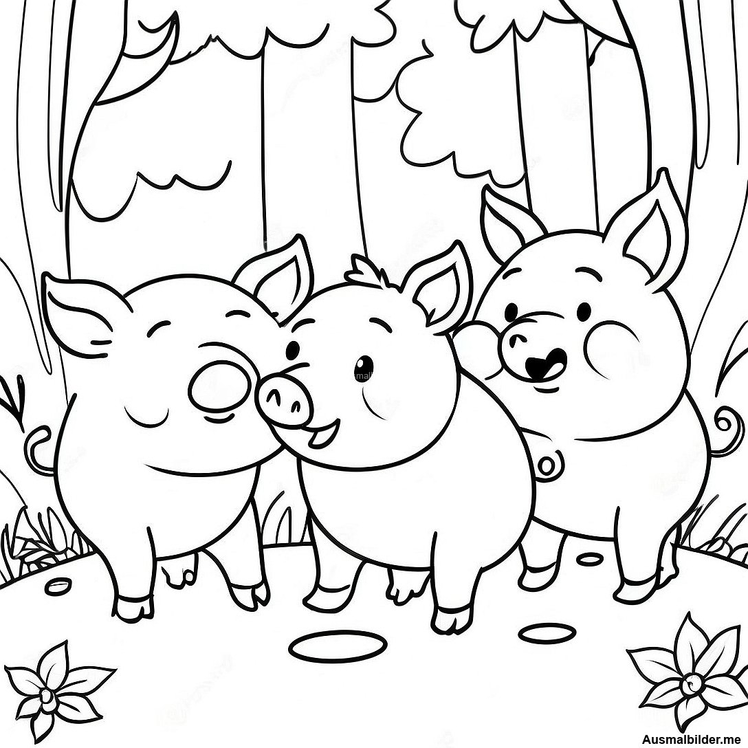 Drei Kleine Schweinchen Im Wald Ausmalbild 76603 19444
