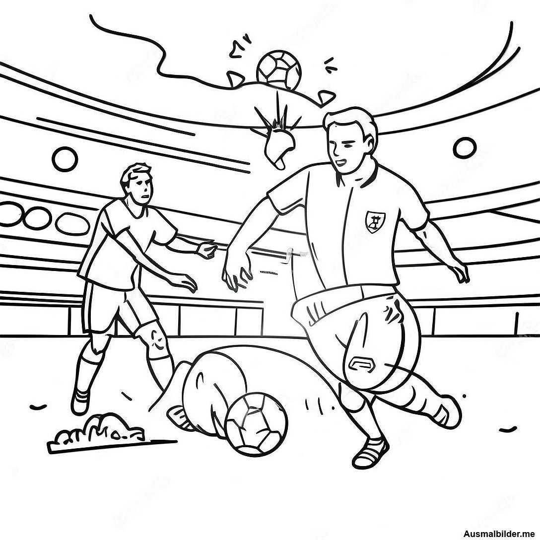 Druckbare PDF von Dynamische Ausmalbildszene Eines Weltmeisterschaftsspiels herunterladen