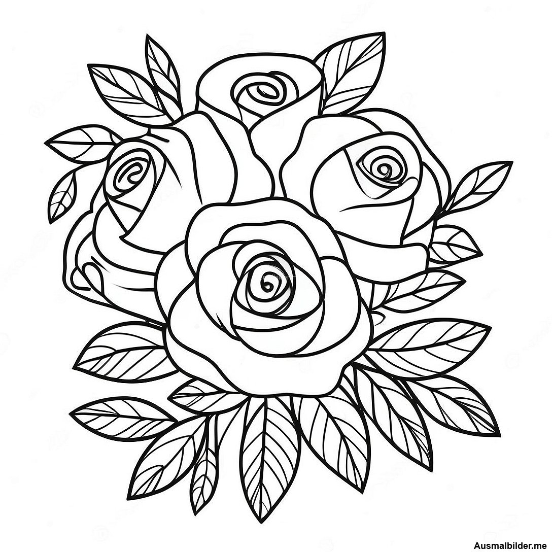 Druckbare PDF von Eleganter Rosenstrauß Ausmalbild herunterladen