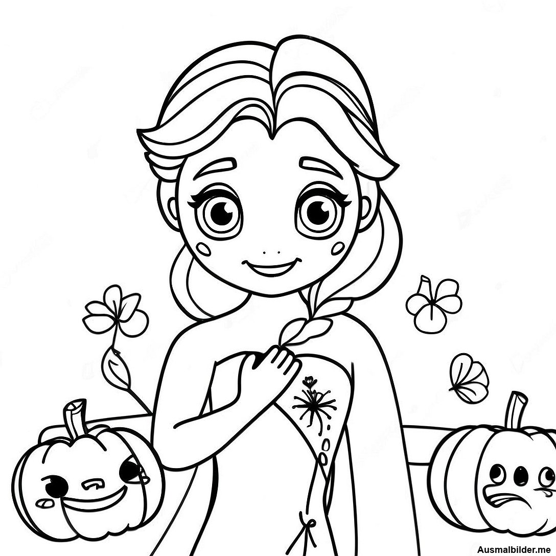 Druckbare PDF von Elsa Mit Kürbis Ausmalbild herunterladen