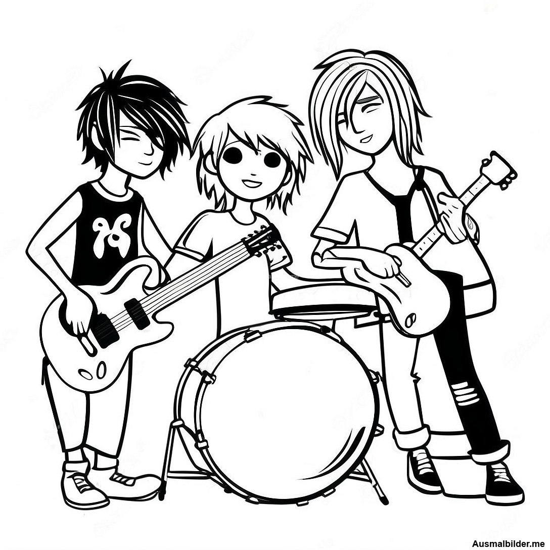 Druckbare PDF von Emo Band, Die Musik Spielt Ausmalbild herunterladen