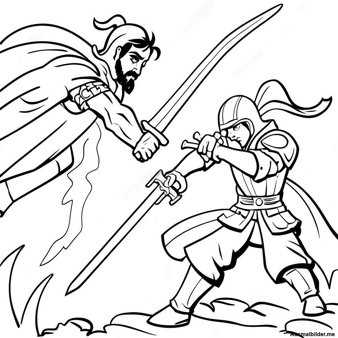 Episches Schwertkampf Ausmalbild