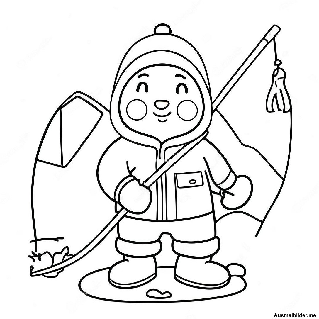 Eskimo, Der Auf Dem Eis Fischt Ausmalbild