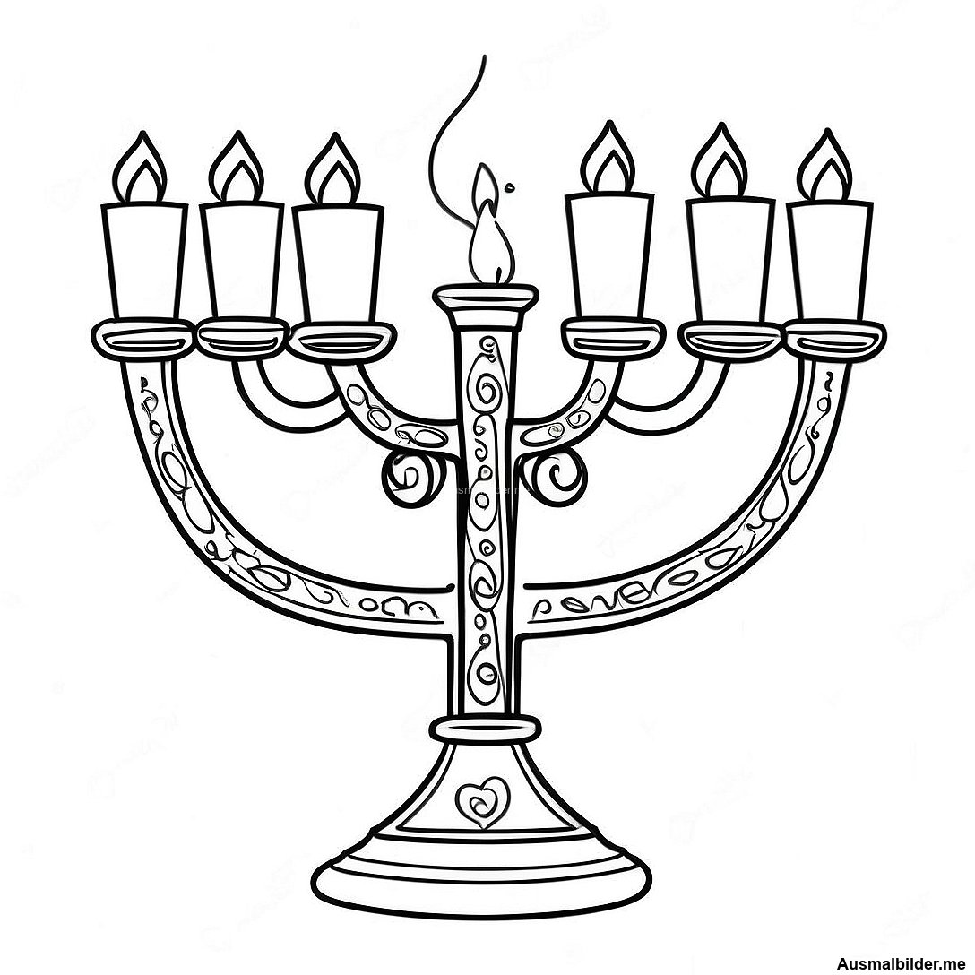 Druckbare PDF von Festliche Menora Ausmalbild herunterladen