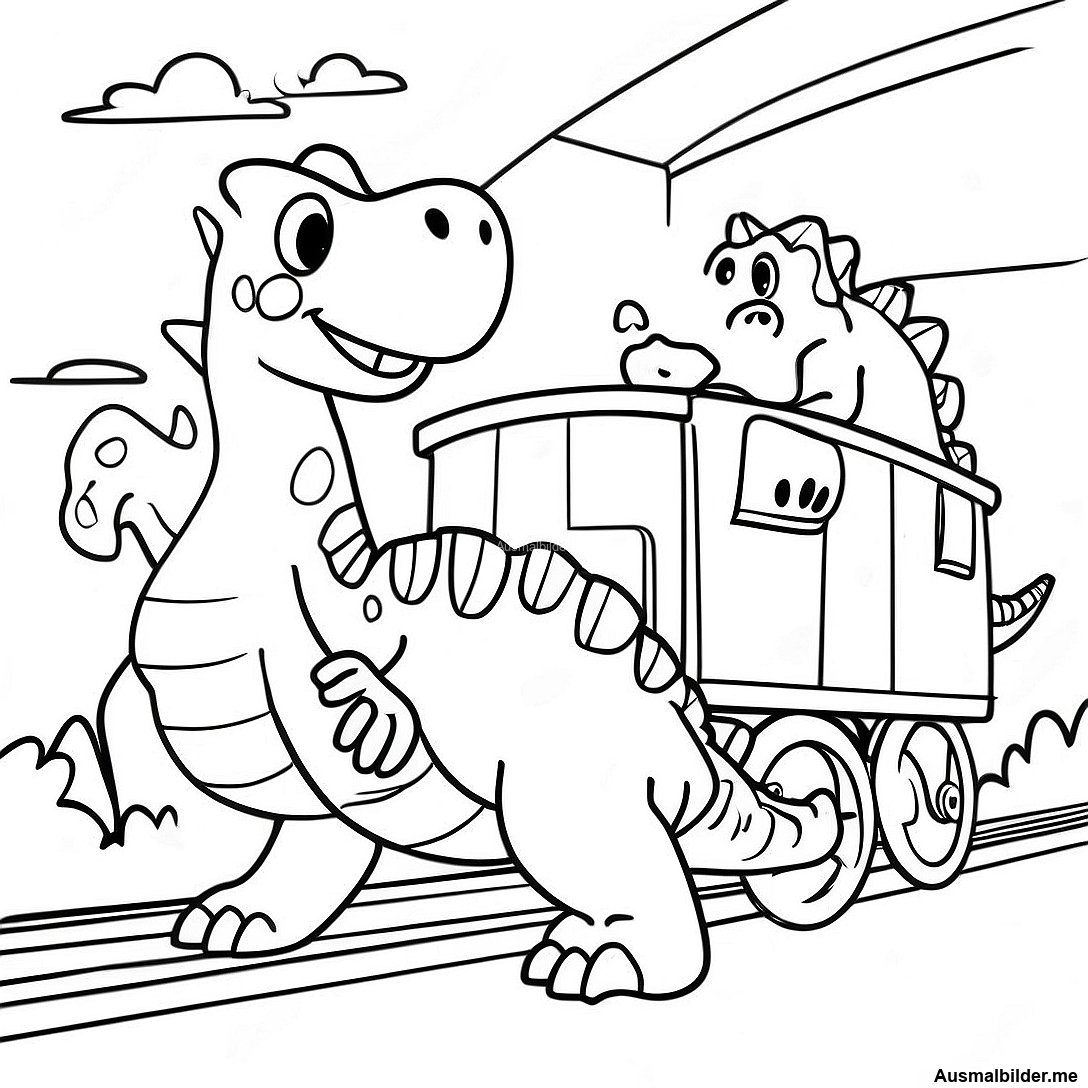 Druckbare PDF von Freundliche Dinosaurier In Einem Zug Ausmalbild herunterladen
