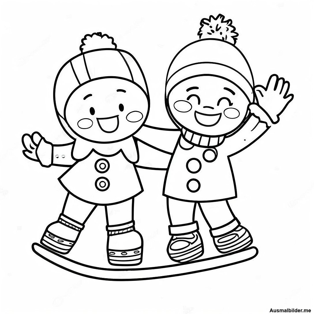Druckbare PDF von Fröhliche Eislauf-Freunde Ausmalbild herunterladen