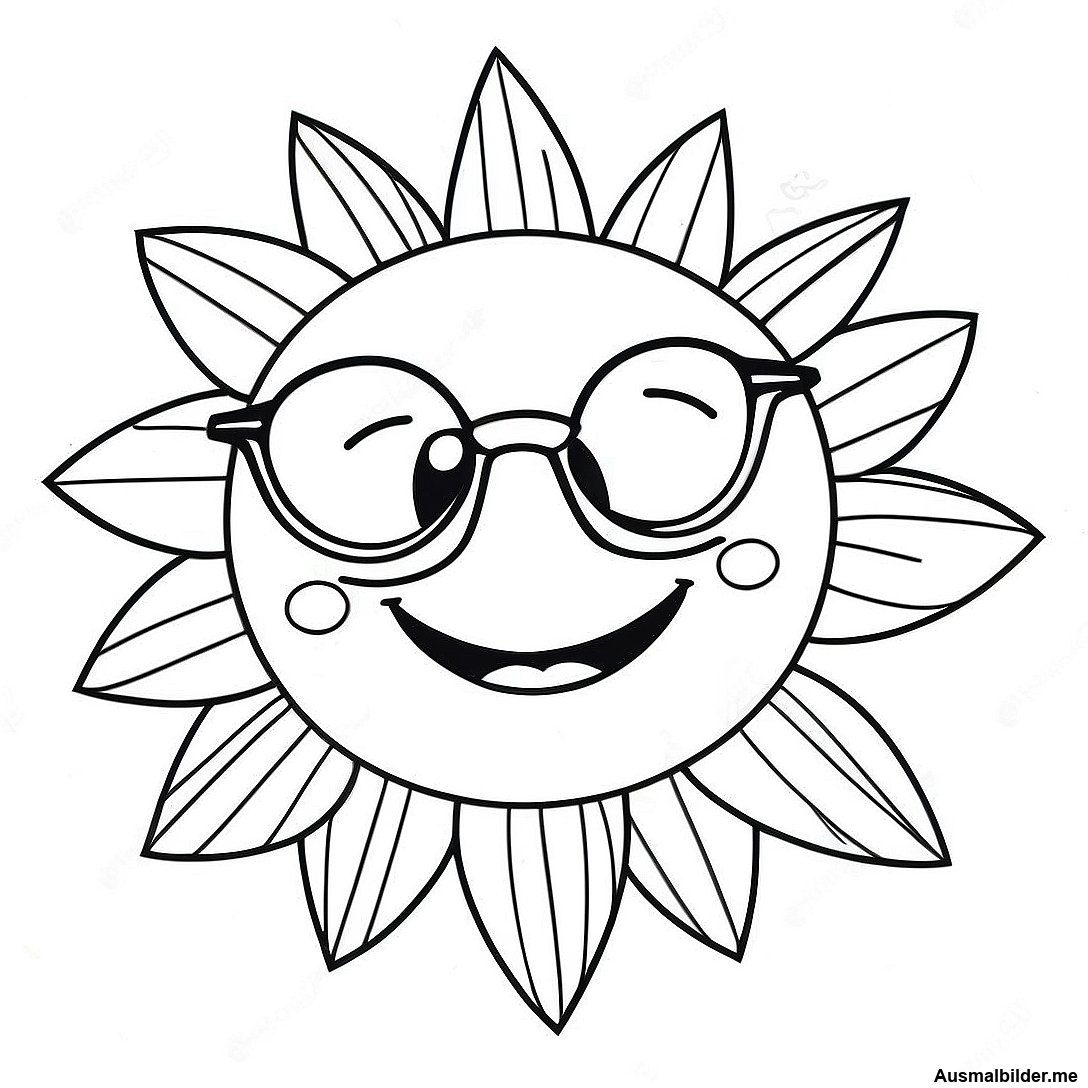 Fröhliche Sonne Mit Sonnenbrille Ausmalbild
