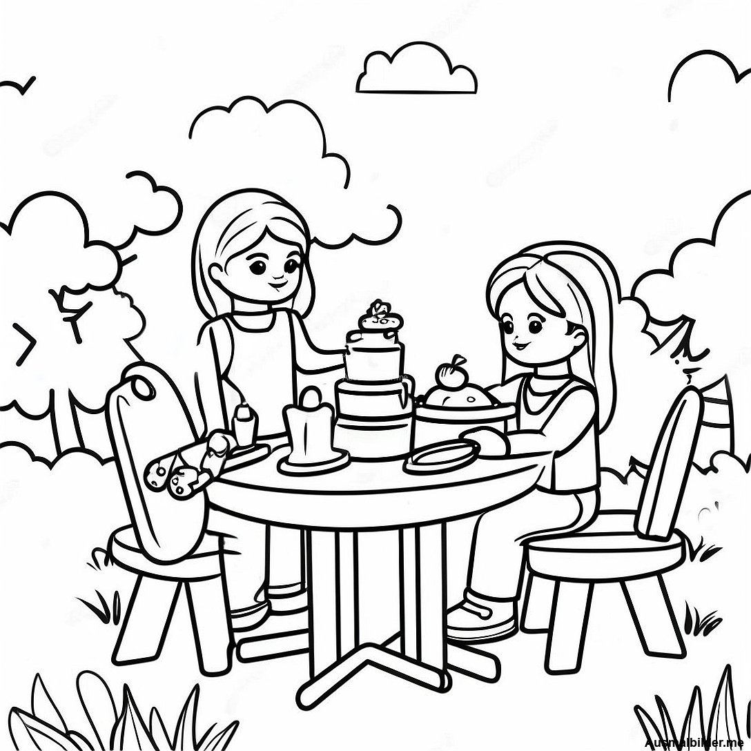 Fröhliches Lego Friends Picknick Ausmalbild