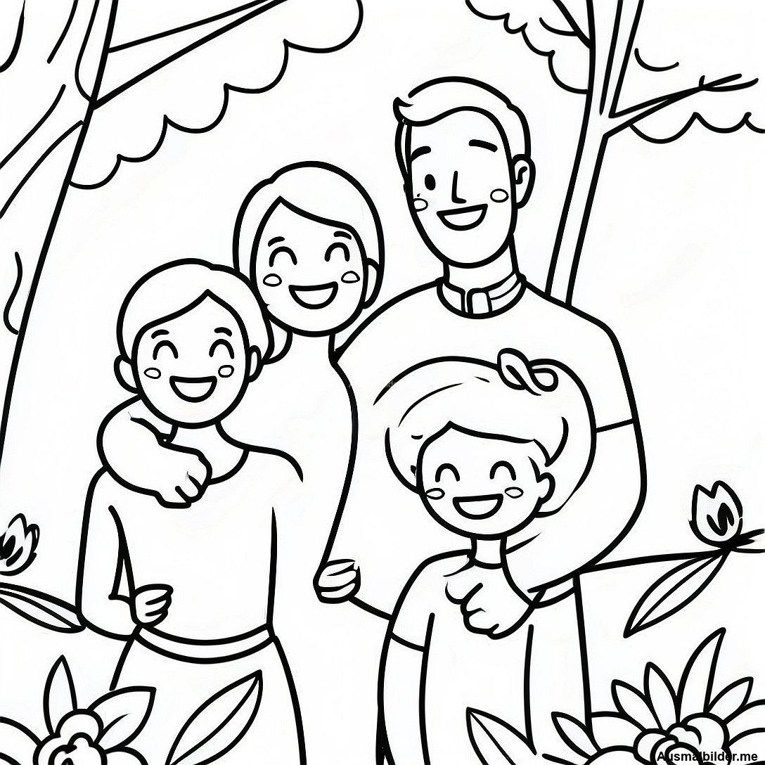Druckbare PDF von Glückliche Familie Ausmalbild herunterladen