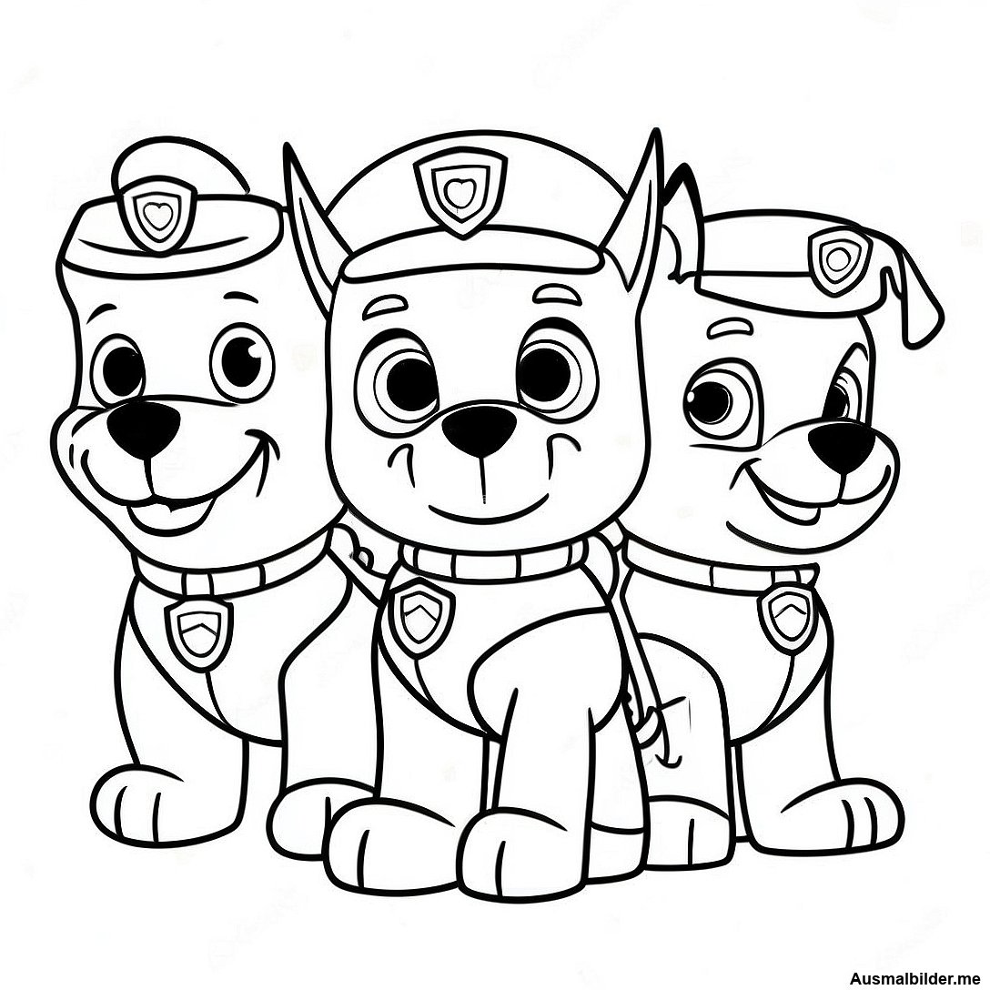Paw Patrol Welpen in Weihnachtsmützen Ausmalbild