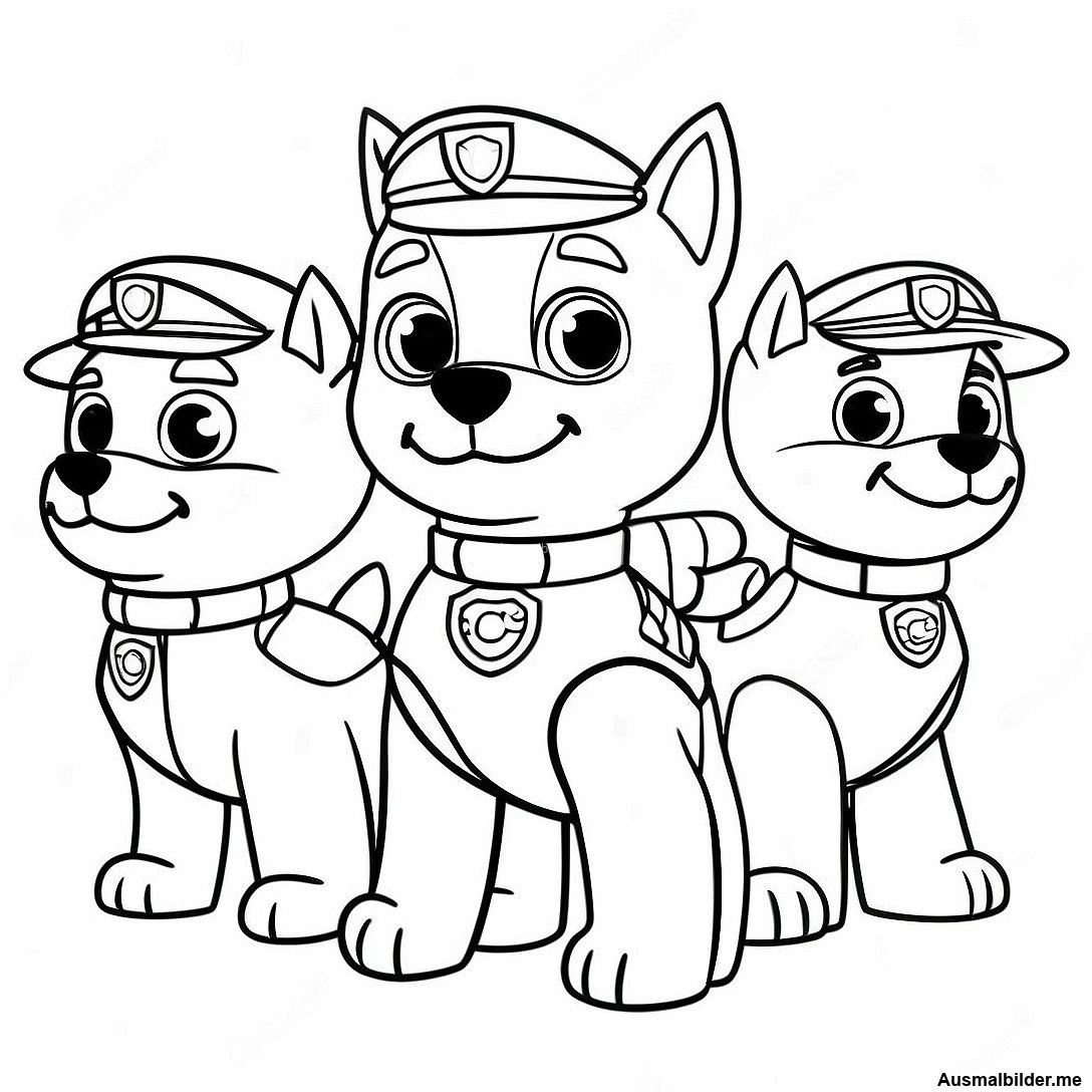 Paw Patrol Welpen in Weihnachtsmützen Ausmalbild