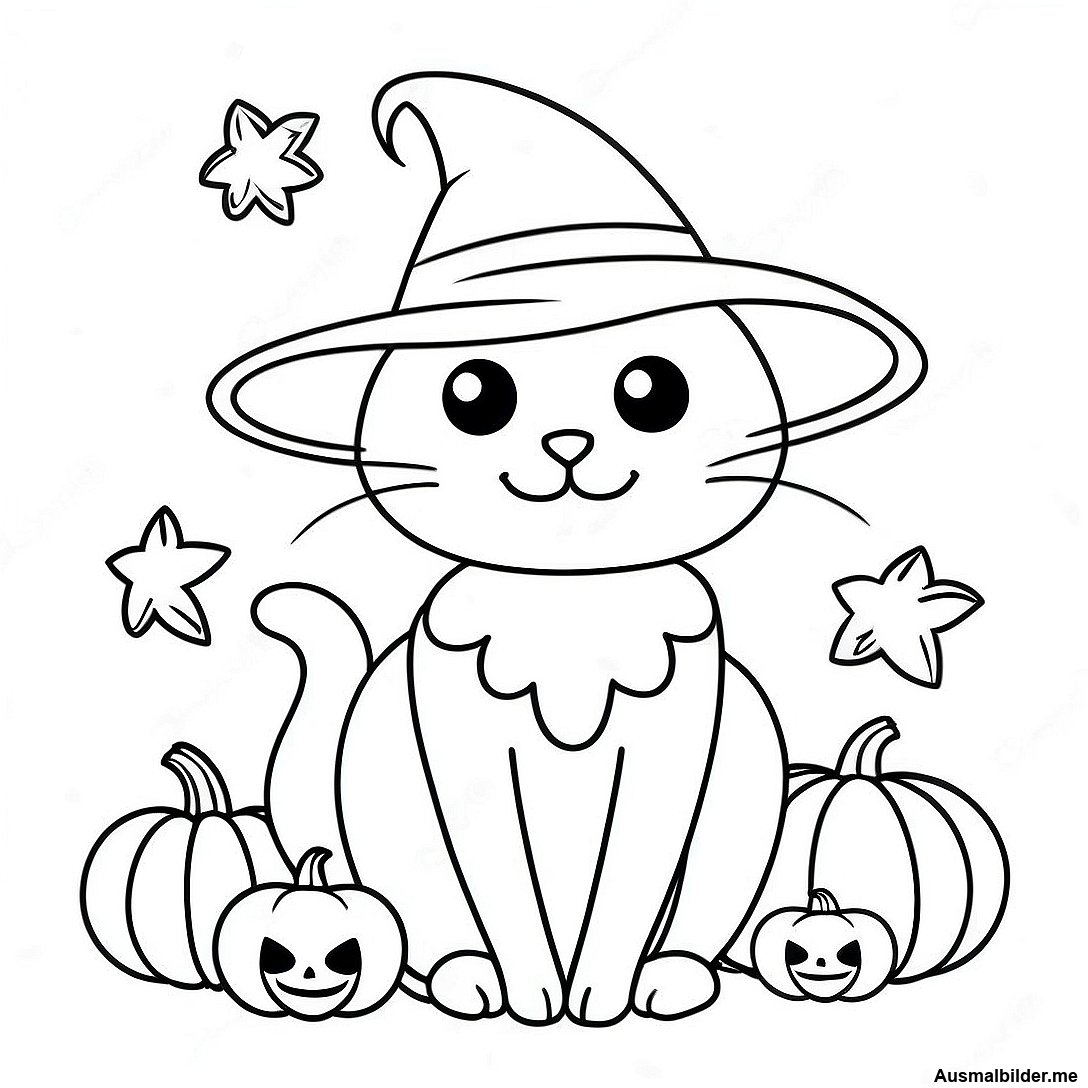 Hexenkatze Die Auf Einem Kurbis Sitzt Ausmalbild
