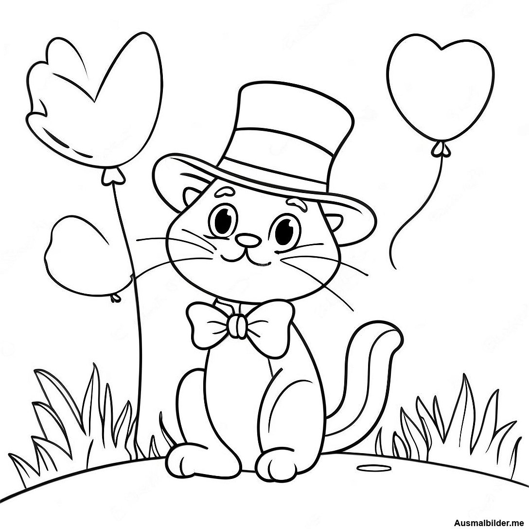Katze Im Hut Mit Bunten Ballons Ausmalbild