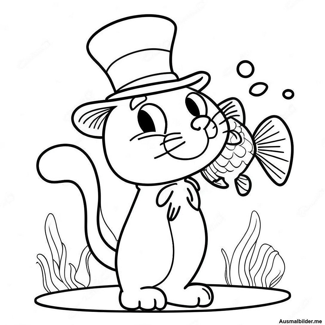 Katze Im Hut Spielt Mit Fischen Ausmalbild