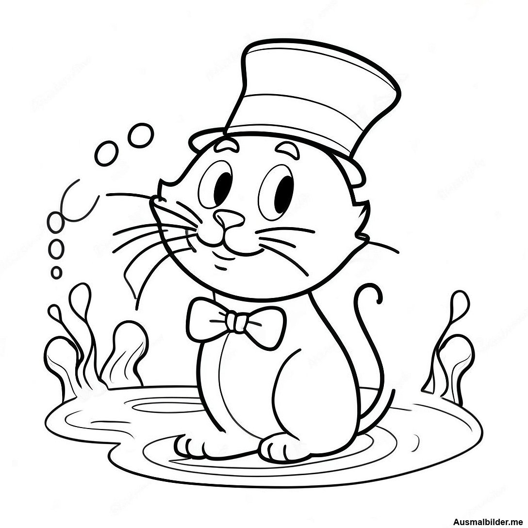 Katze Im Hut Spielt Mit Fischen Ausmalbild