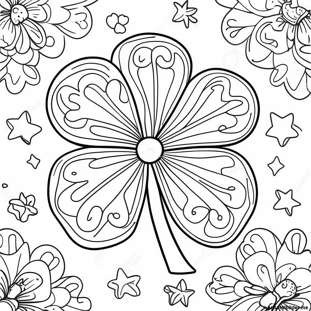 Druckbare PDF von Kleeblatt Mit Glitzernden Sternen Ausmalbild herunterladen