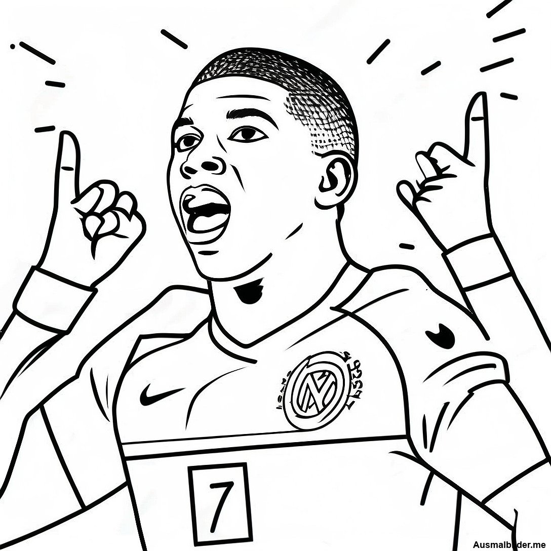 Druckbare PDF von Kylian Mbappe Feiert Ein Tor Ausmalbild herunterladen