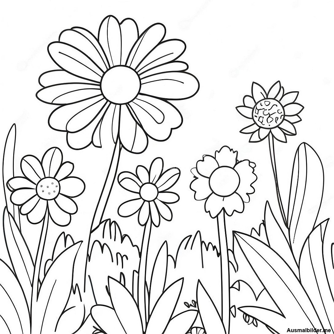 Bunte Frühlingsblumen Ausmalbild