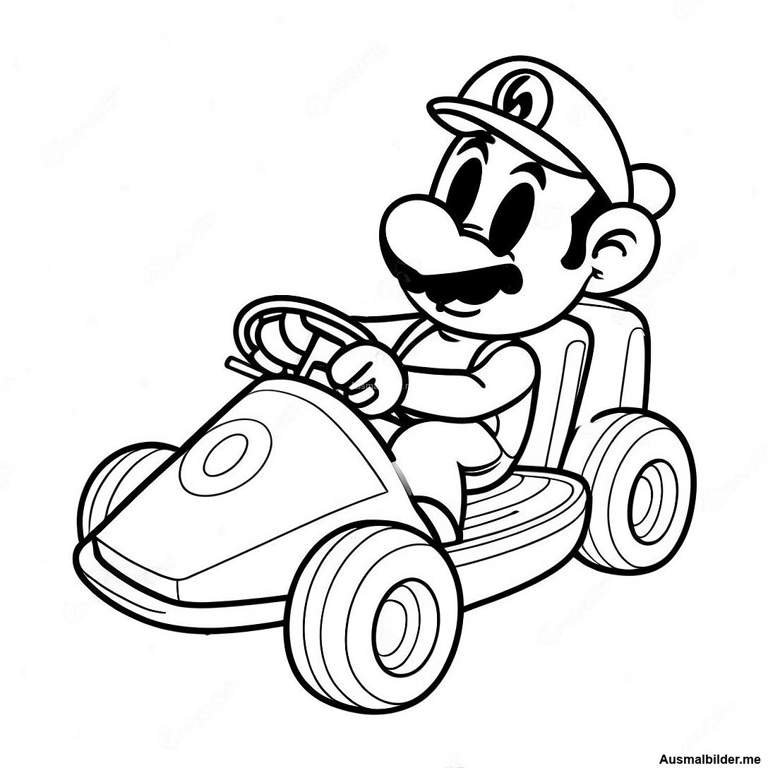 Druckbare PDF von Luigi Fährt Ein Kart Ausmalbild herunterladen