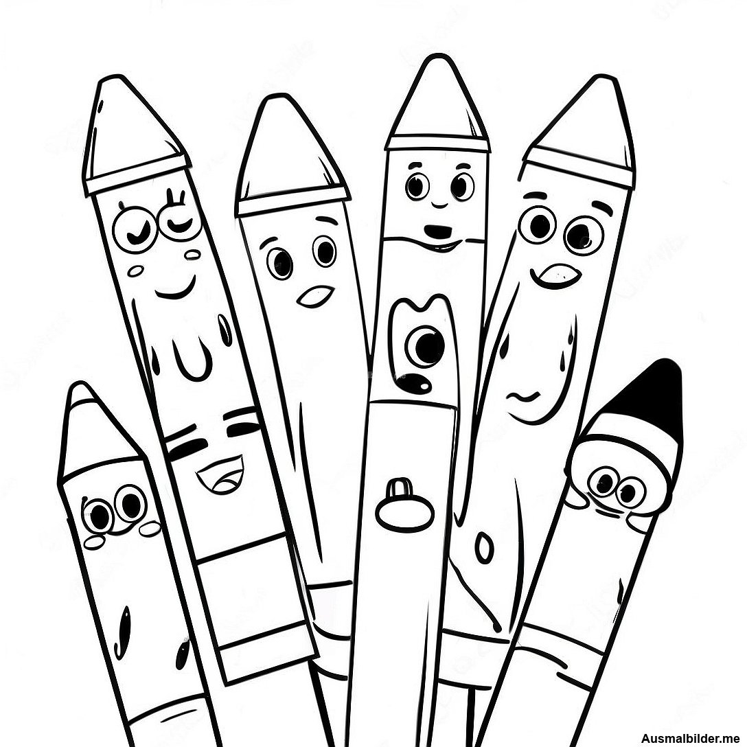 Druckbare PDF von Lustige Buntstift Freunde Ausmalbild herunterladen