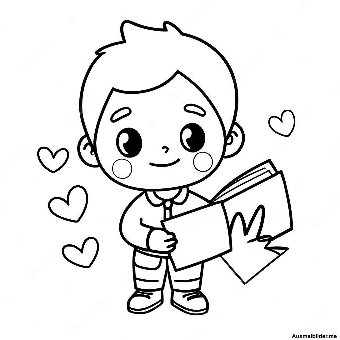 Druckbare PDF von Lustiger Junge, Der Einen Liebesbrief Sendet Ausmalbild herunterladen