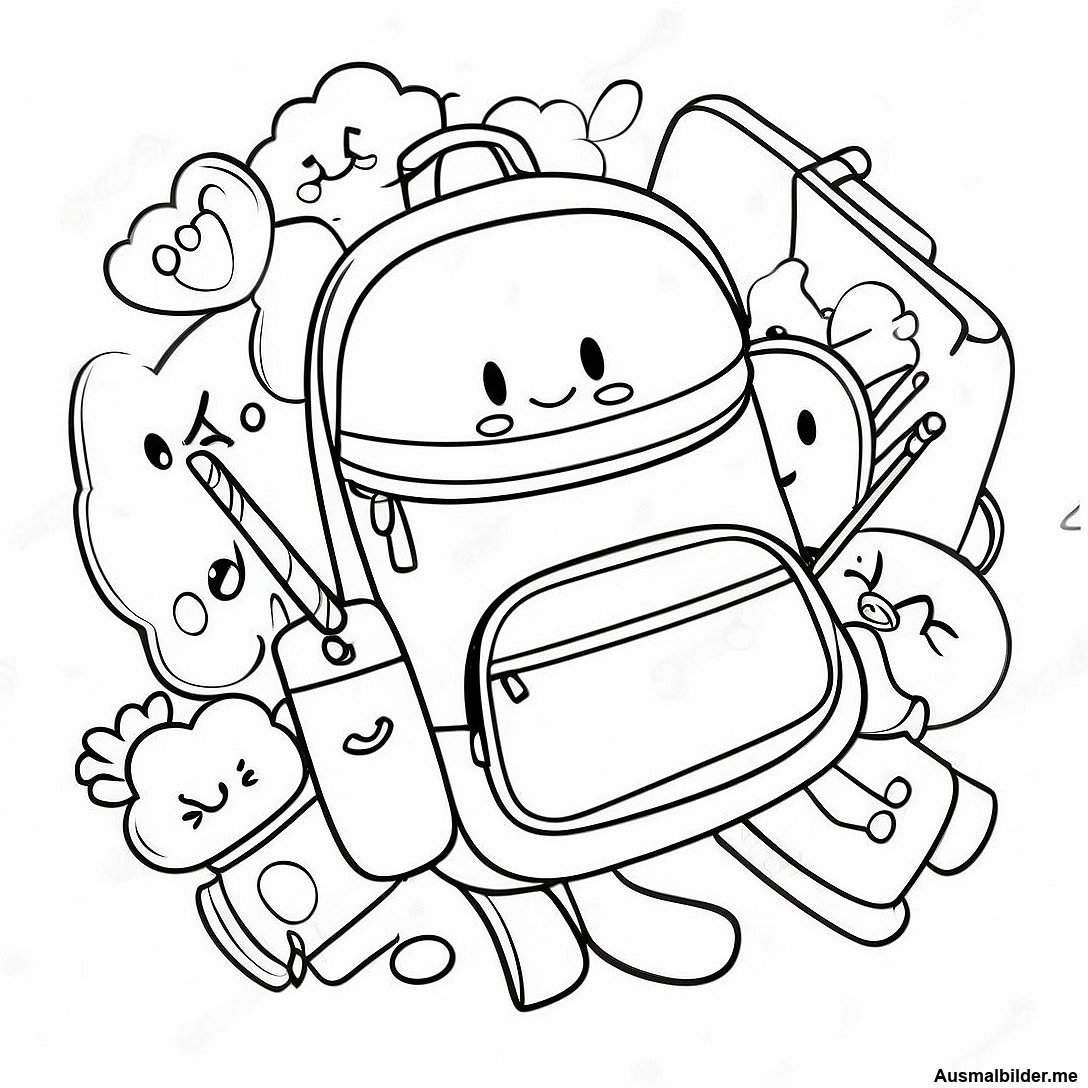 Druckbare PDF von Lustiger Rucksack Mit Cartoon-Charakteren Ausmalbild herunterladen
