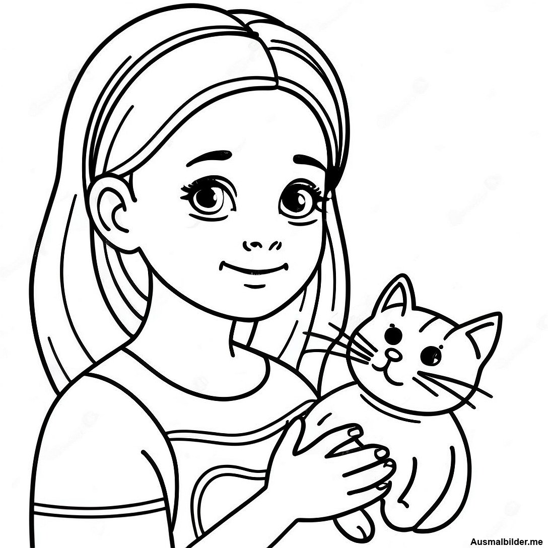 Mädchen Mit Katze Ausmalbild