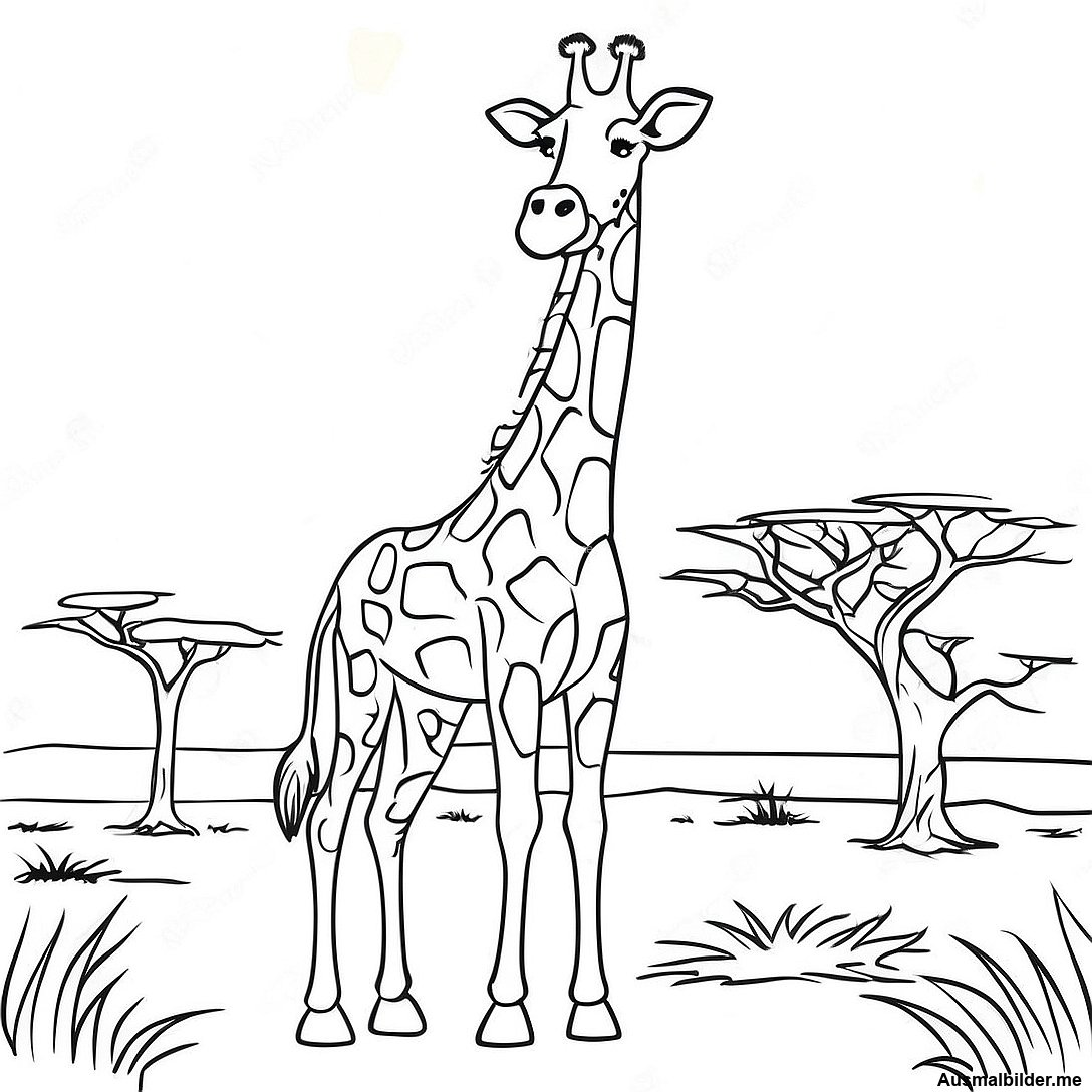 Majestatische Giraffe In Der Savanne Ausmalbild