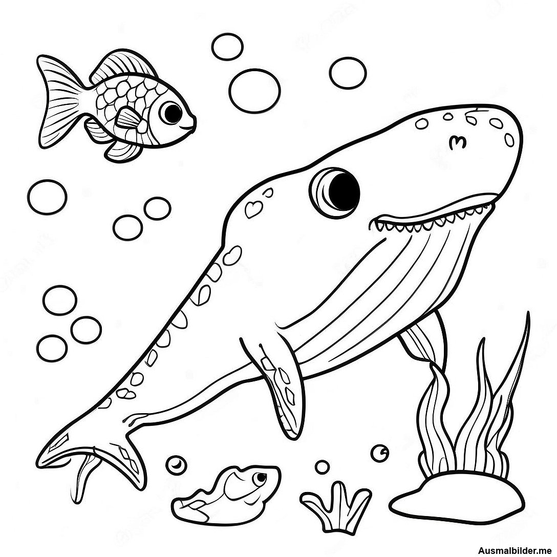 Mosasaurus Mit Bunten Fischen Ausmalbild 83805 25033