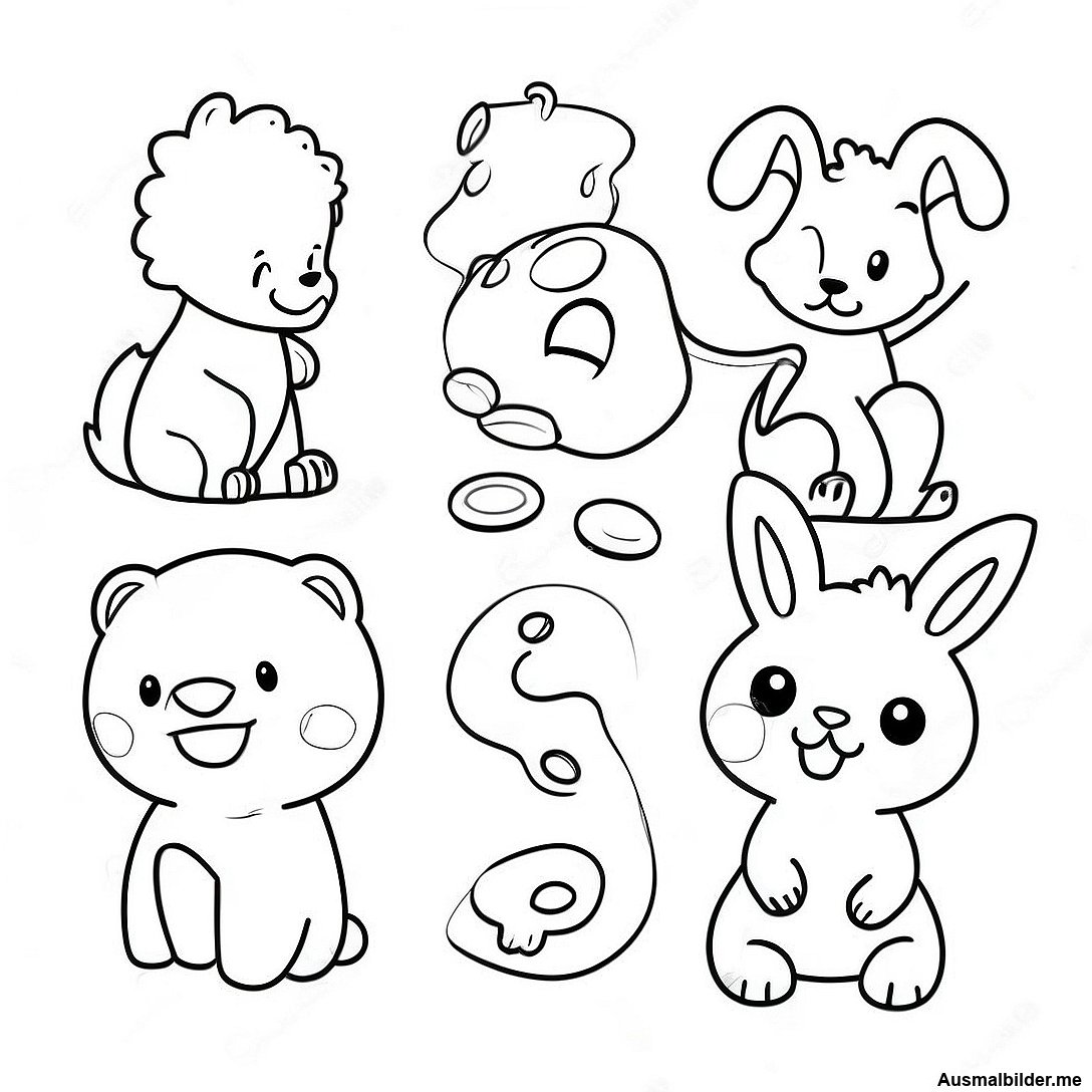 Niedliche Tierzahlen Ausmalbild