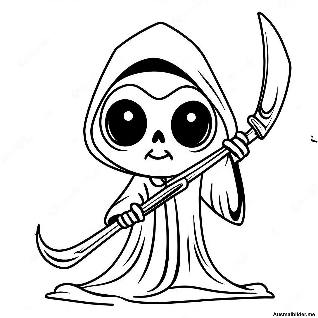 Niedlicher Sensenmann Mit Sense Ausmalbild