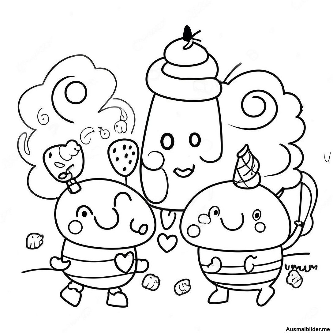 Peppa Pig Und Freunde Mit Eiscreme Ausmalbild