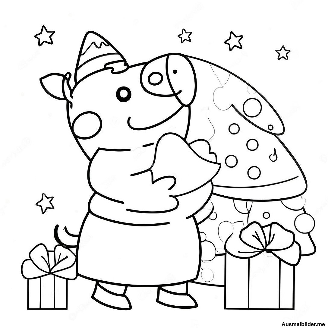 Druckbare PDF von Peppa Wutz Weihnachtsausmalbild herunterladen