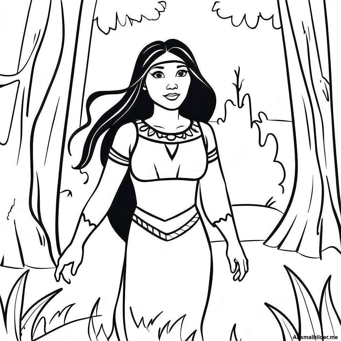 Pocahontas In Einem Bunten Wald Ausmalbild