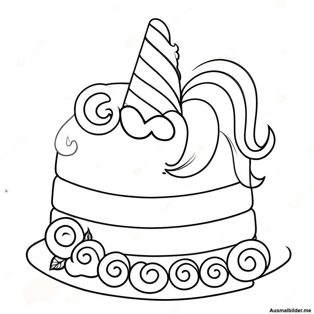 Druckbare PDF von Regenbogen Einhorn Kuchen Ausmalbild herunterladen