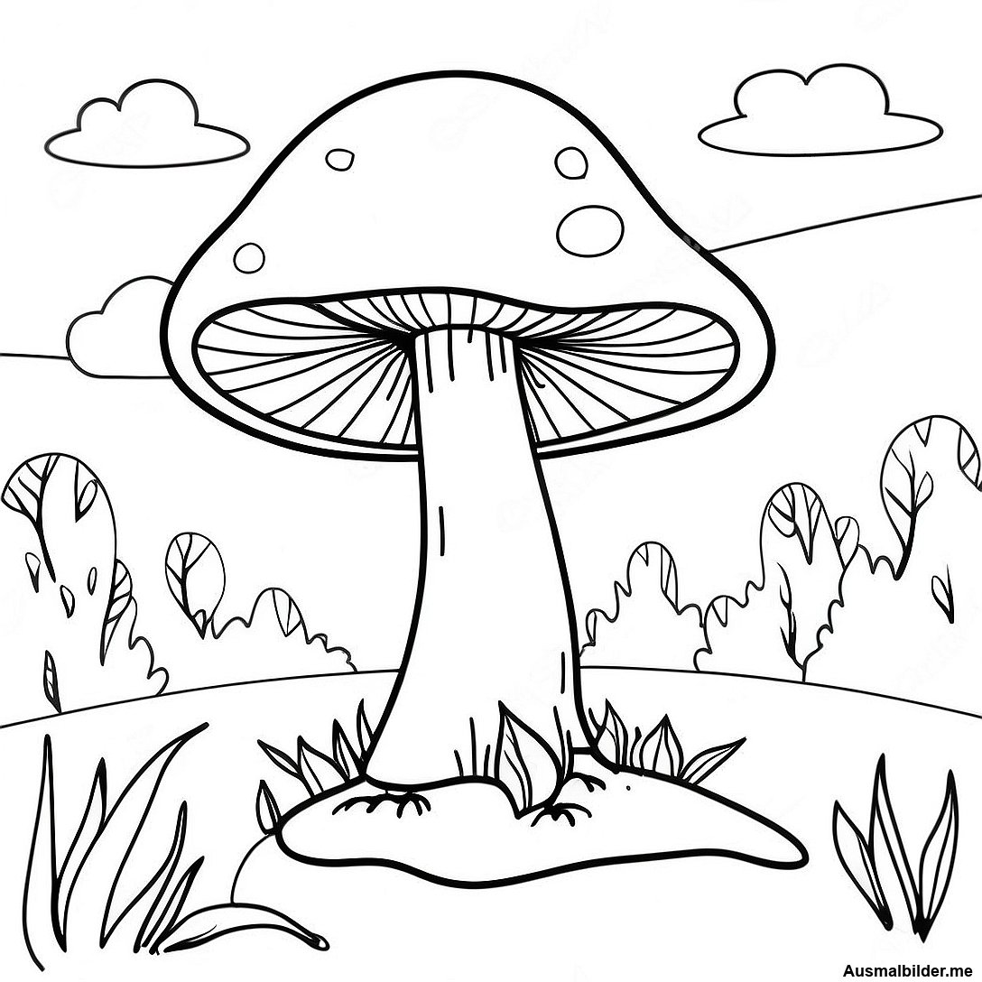 Druckbare PDF von Riesige Pilzlandschaft Ausmalbild herunterladen